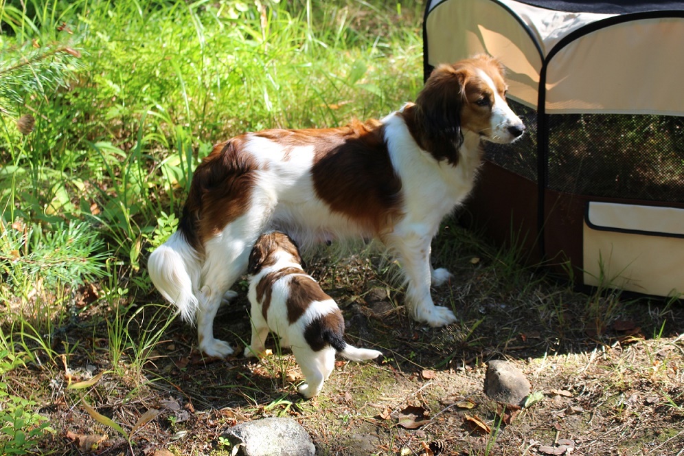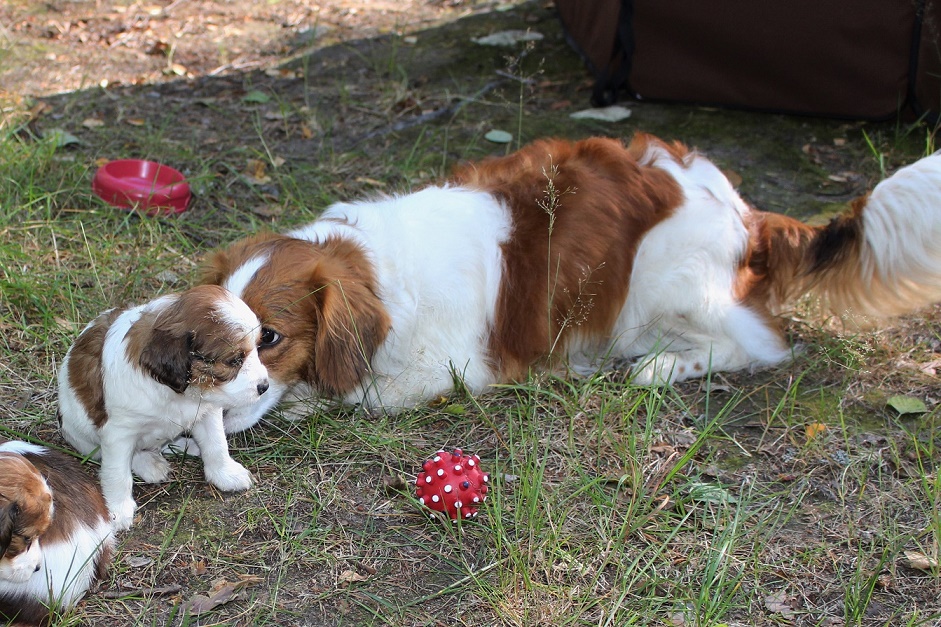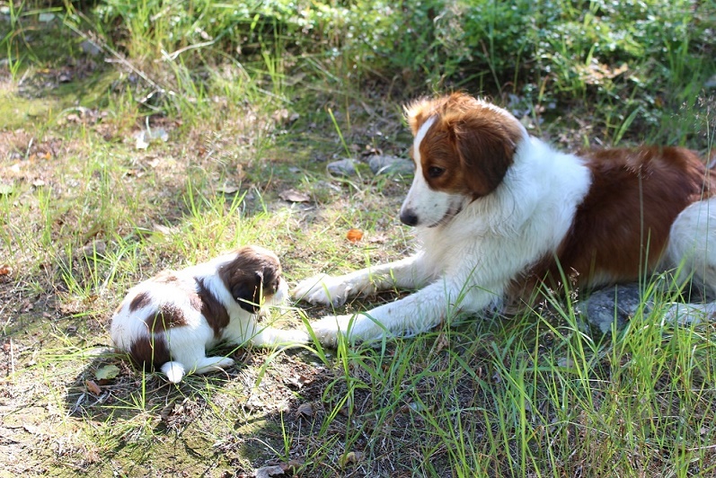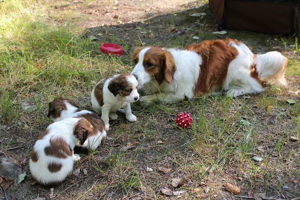 Ensi tiistaina pennut täyttävät jo viisi viikkoa! Vauhti lisääntyy leikeissä ja temmellyksessä välillä rajuksikin painiksi. Illusia käy enää harvakseltaan imettämässä, johtuu varmaankin pentujen erittäin terävistä hampaista!